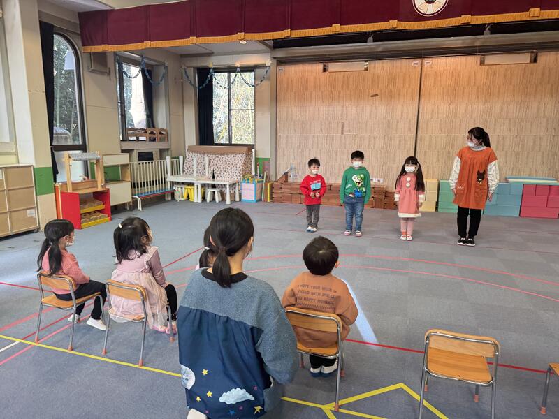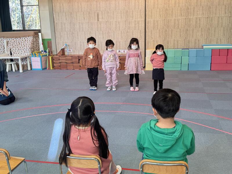 園長・養護教諭のお話の後、7名の園児が冬休みの思い出や3学期のめあてを発表し、良いスタートとの日になりました。園児の皆さんの成長がとても楽しみです。