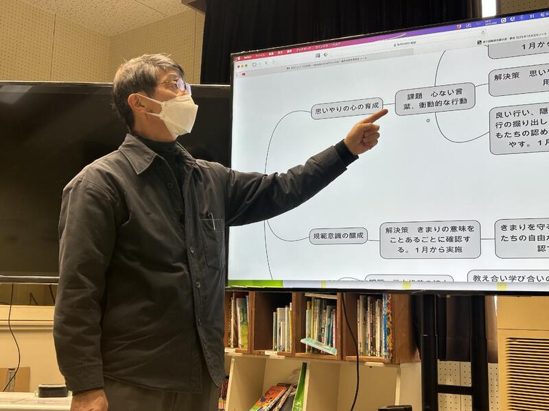 2025年1月8日 20時35分放課後の時間を利用して、先生方が3学期49日間に、担任している子どもたちとどんなことに取り組んでいくのかについて、マインドマップを使って共有いたしました。