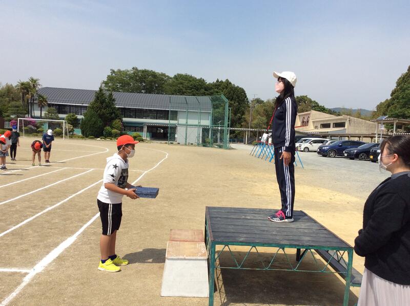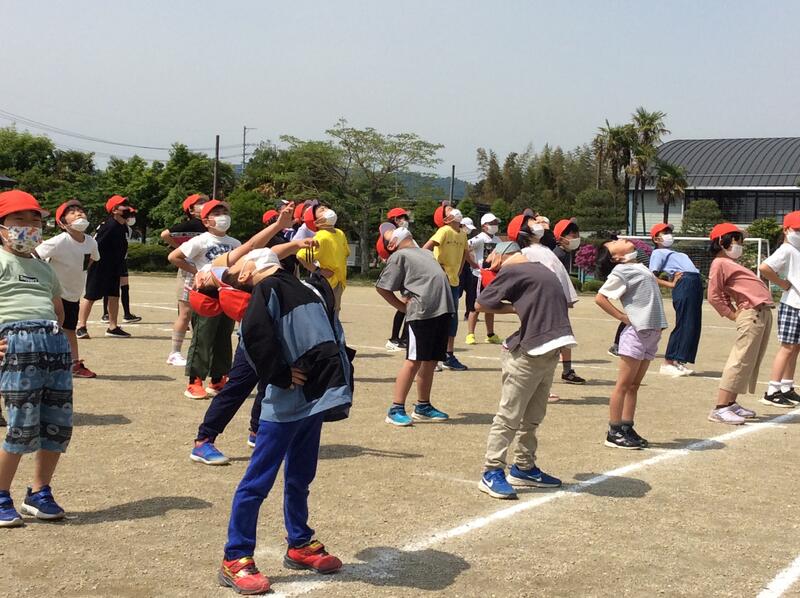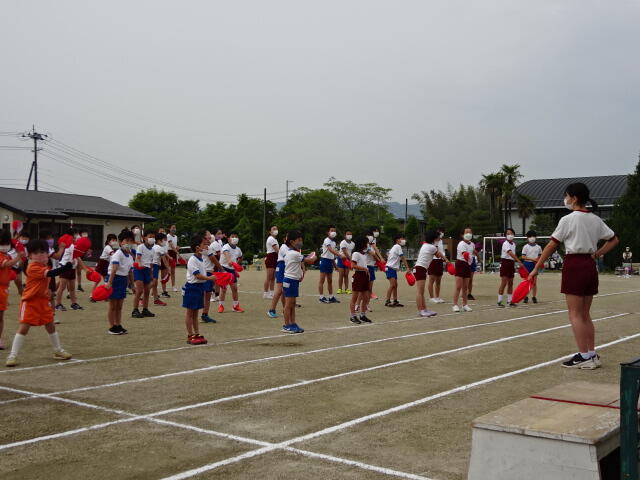 本日の全体練習の様子です。今日は、開会式と閉会式を通して練習しました。進行役や誓いの言葉などを発表する代表児童も、自信をもって大きな声で言えるようになりました。またラジオ体操も、全校生が動きをそろえてできるようになりました。