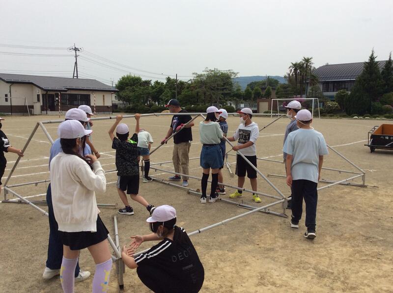 そして5校時は5年生と6年生が、放課後には職員が会場の準備をしました。5年生は長机やパイプイス運びを、6年生はテント運びと骨組みの組み立てをしてくれました。進んで仕事をする姿がすばらしかったです。明日の運動会、子どもたちにとって最高の運動会になりますように。