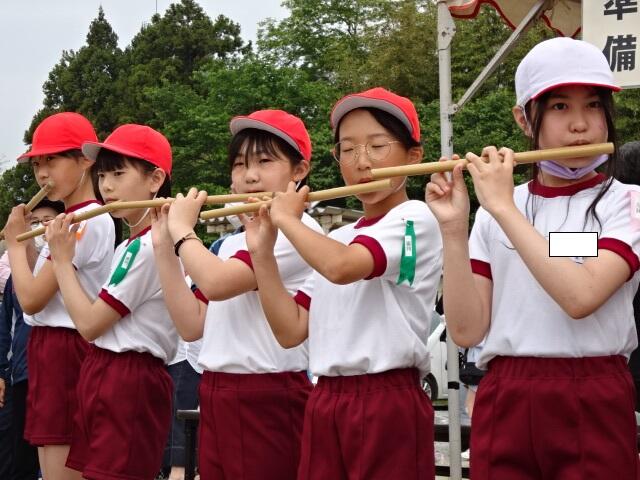 競技中は、6年生が相馬盆唄の演奏をしてくれました。