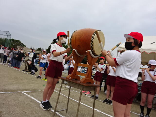 運動会の歌を元気よく歌って、いよいよ八幡幼稚園・八幡小学校の大運動会の始まりです。
