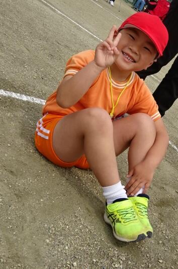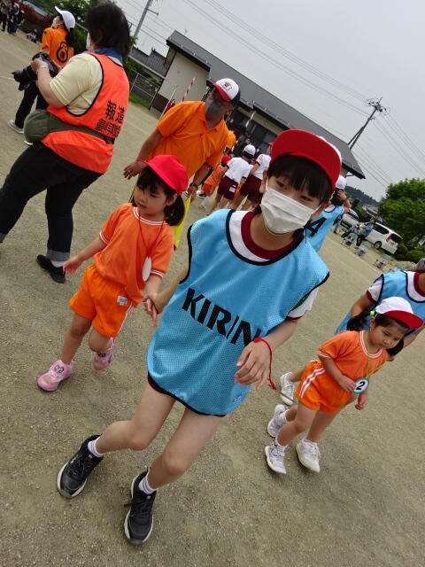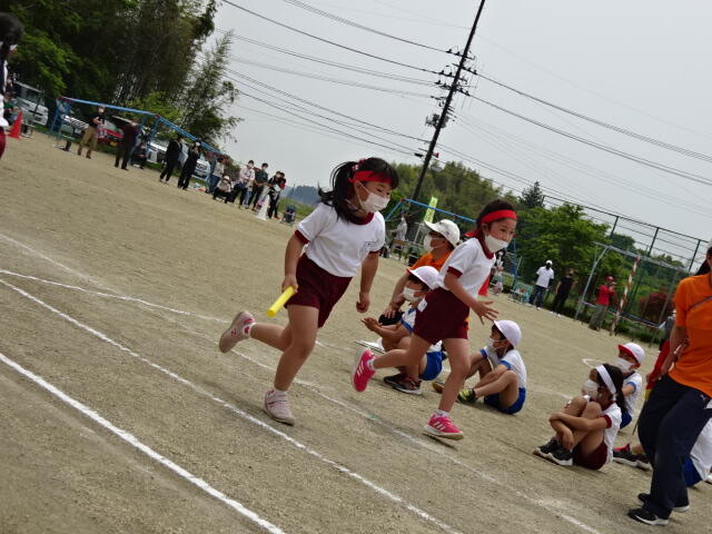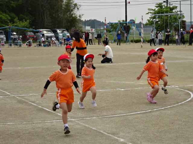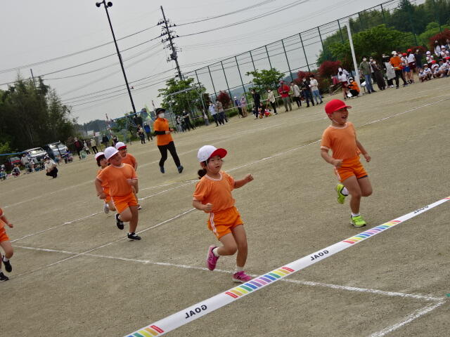 幼稚園の子どもたちが、ゴールを目指して走ります。