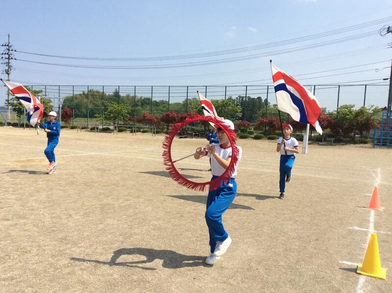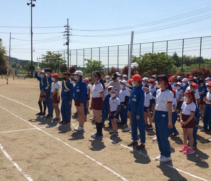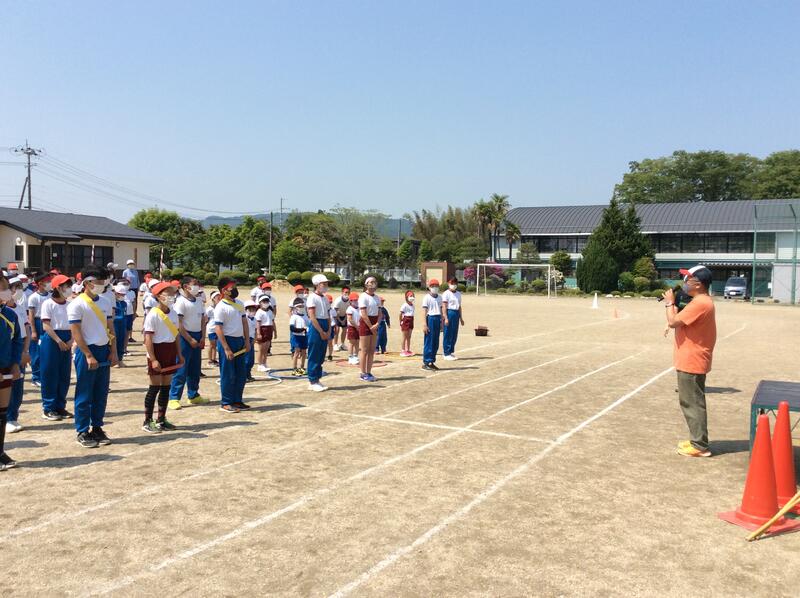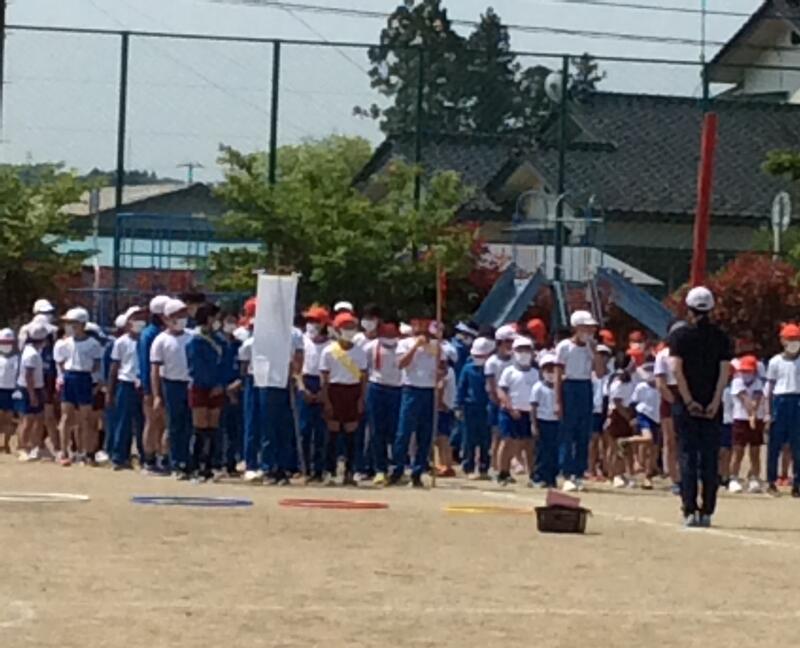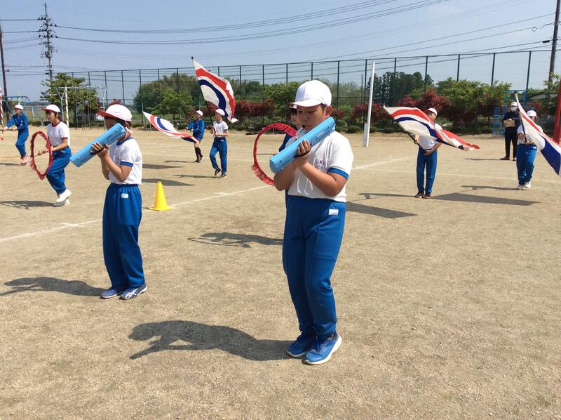そして、明日の運動会の開会式の練習をしている子どもたちもいます。