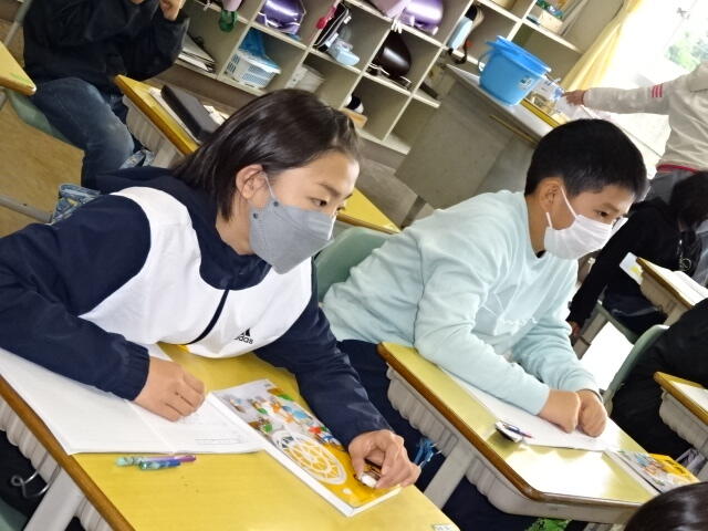 5年生も話をしている友達の方を向く約束を守ってしっかり学習をしています。