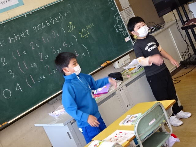 子どもたちは、体の一部分を使って、上手にリズムを打っていました。