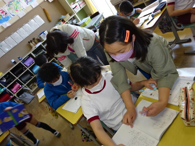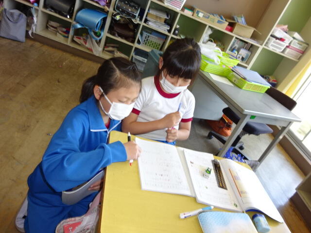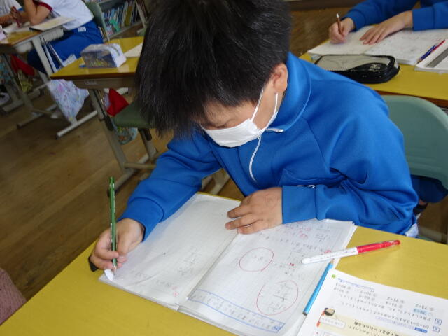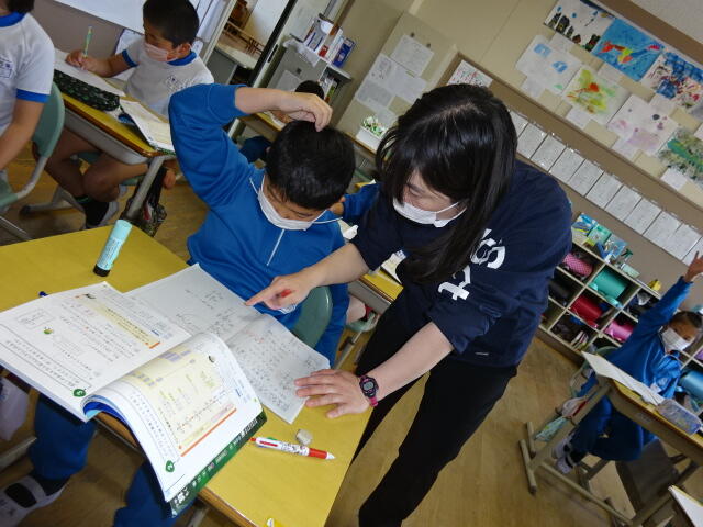 お互いに教え合いながら学習する4年生の姿、すばらしいですね。