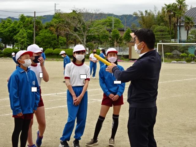 体育専門の教頭先生からリレーのアドバイスを受けた子どもたちは、