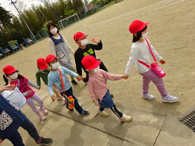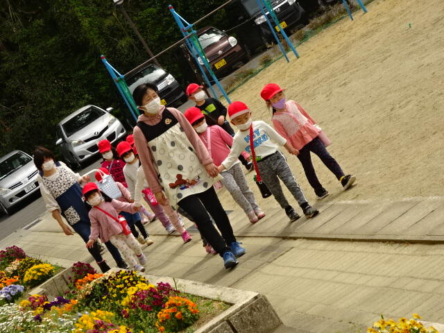 今日の午前中は天気も良かったので、幼稚園の子どもたちは散歩に出かけました。