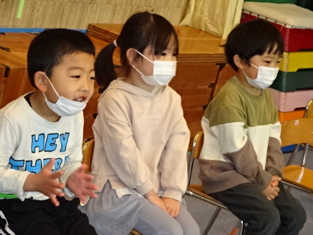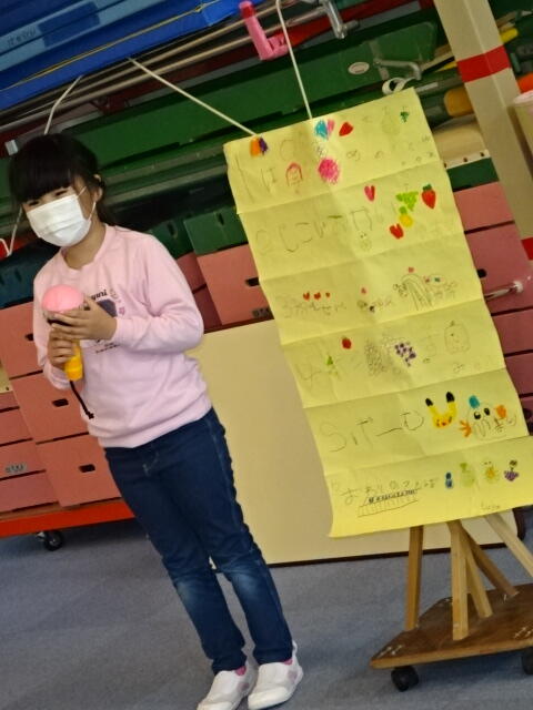 子どもたちは、自分の名前と好きなものを上手に発表することができました。