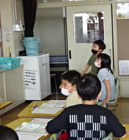 そして4年生。4年生は学校にまつわるクイズを出しました。「学校に遊具(すべり台やジャングルジムなど)はいくつあるでしょう」や「『あ』の正しい書き順は?」など、1年生に答えやすいクイズを考えていました。