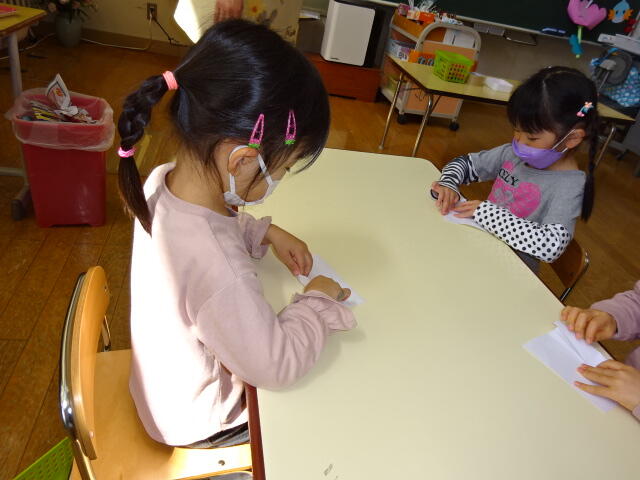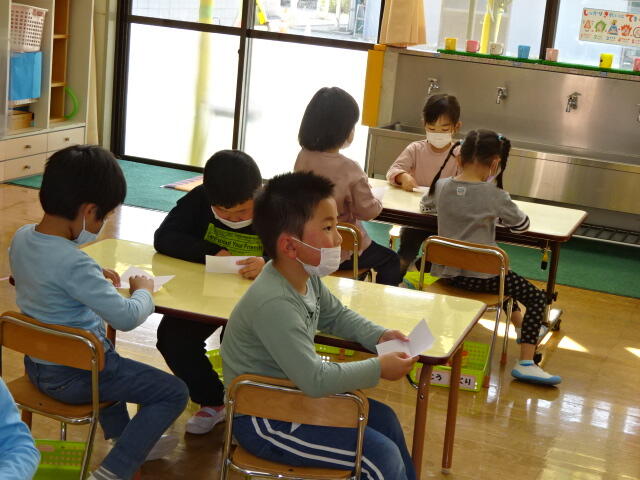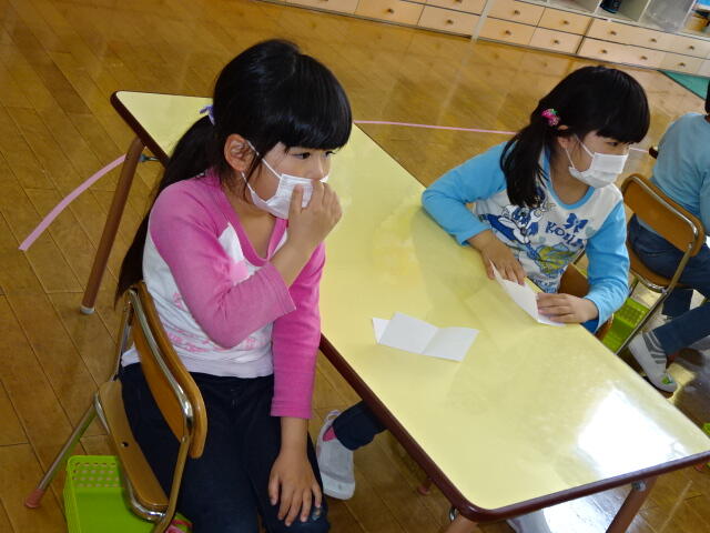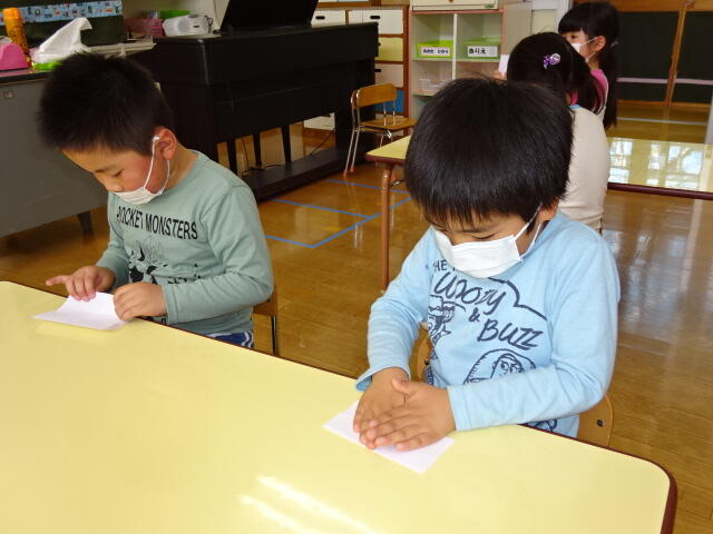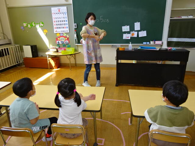 年少組の子どもたちが、はさみの使い方について