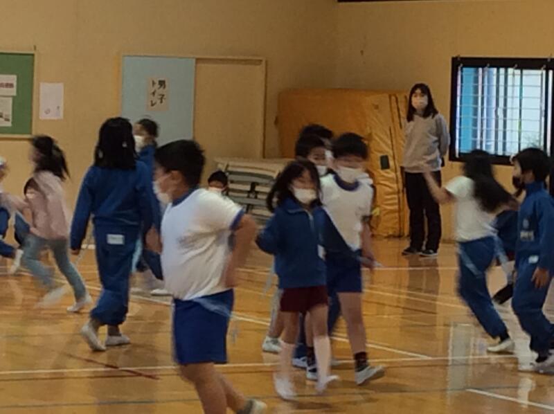 次は、3年生です。3年生は、「しっぽ取りゲーム」をしました。3年生のしっぽ(スズランテープ)を、1年生が取るというゲームで、1年生は取ったしっぽを大切に持っていました。とてもほほえましい姿でした。