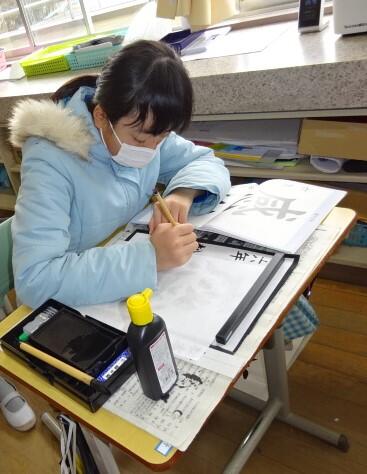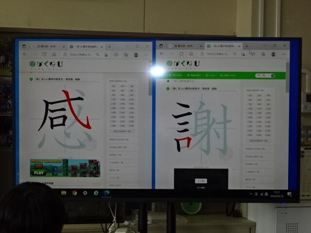 毛筆の学習なので、もちろん書き順も確認しながら練習をしました。