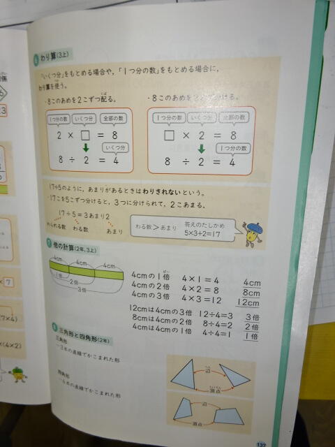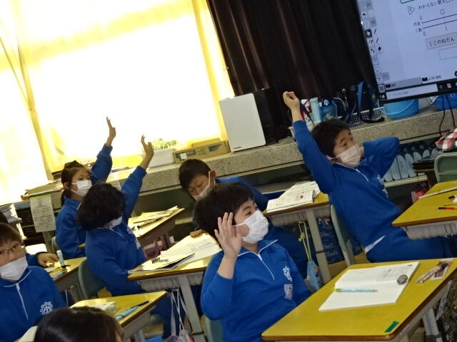 子どもたちは、言葉の式から考えたり、2年生の時に習ったかけ算の式の意味から考えたりしました。