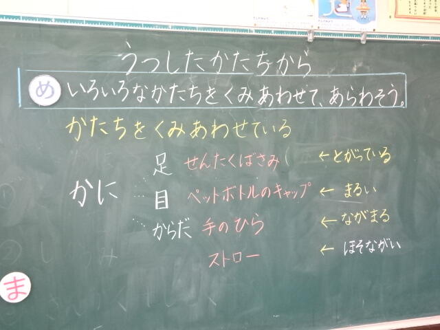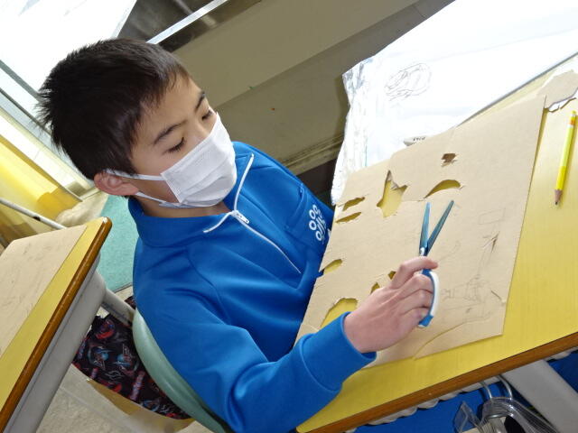 いろいろな形をうつして、組み合わせながら作品づくりをします。
