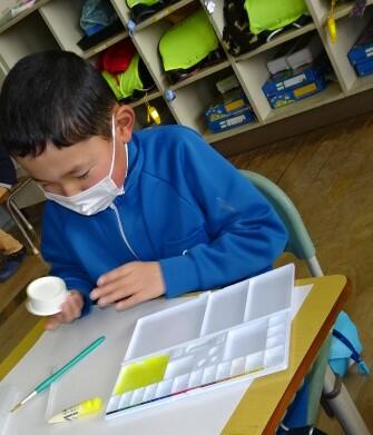 真っ白な画用紙がどんなふうに変わっていくのか楽しみです。