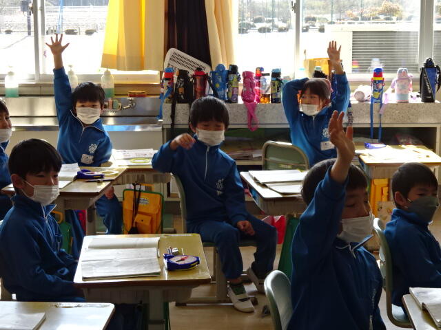 という教師の質問に1年生は一生懸命考えます。