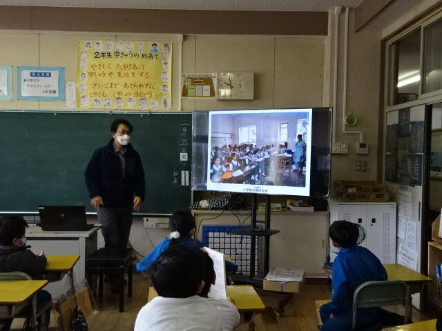 2年生は、ALTと英語指導員から外国の様子について教えてもらいました。