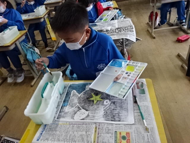 2022年2月15日 14時20分4年生の図画工作科の学習の様子です。
