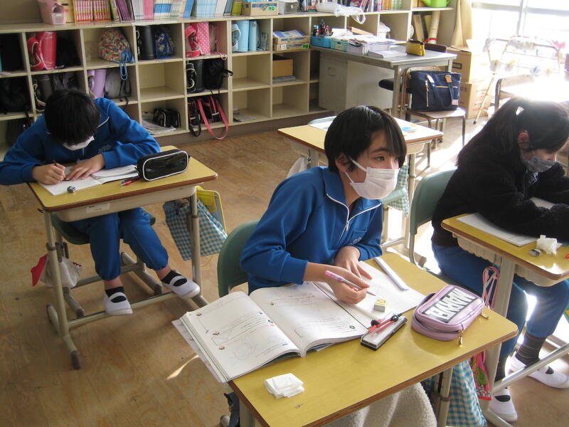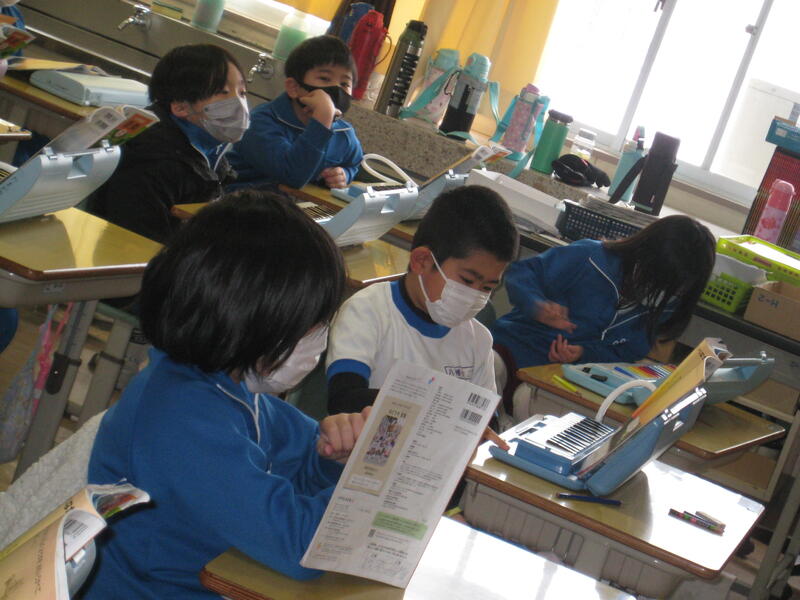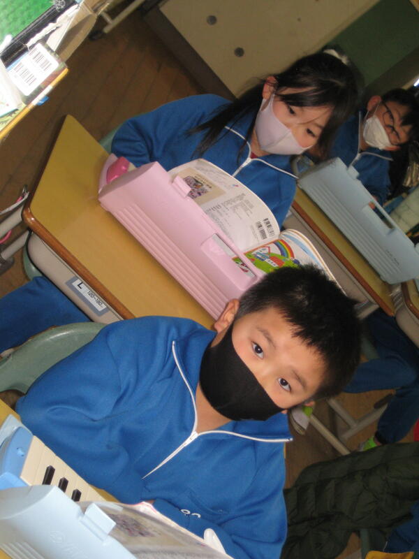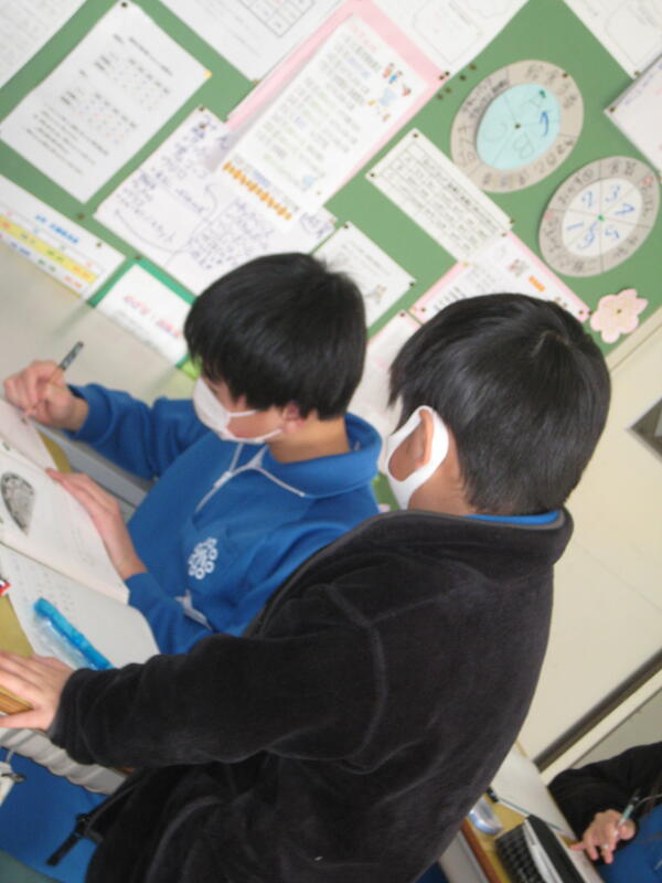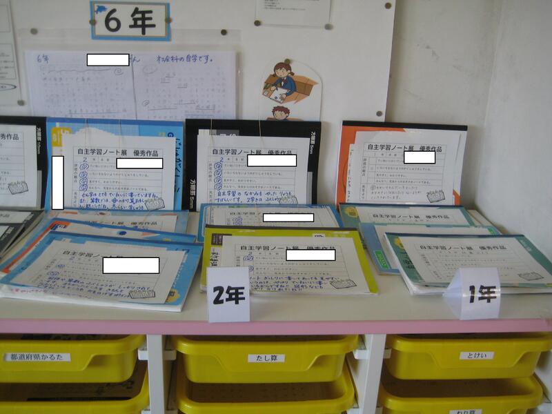 登校した子どもたちは、早速、友達の自主学習ノートを見ていました。