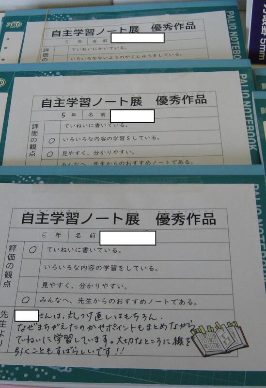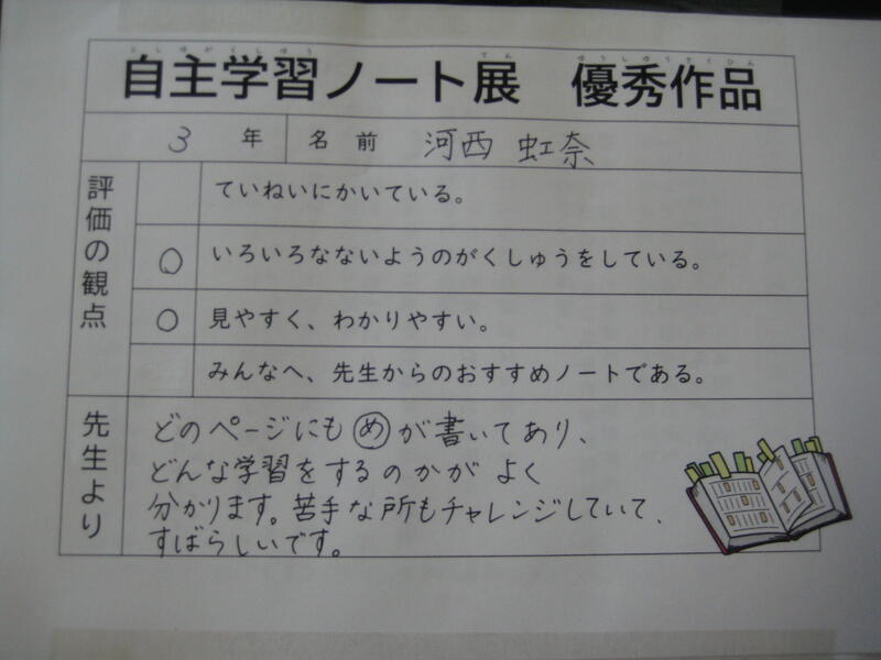 各学級ですばらしい取組をした子どもたちのノートが紹介されています。