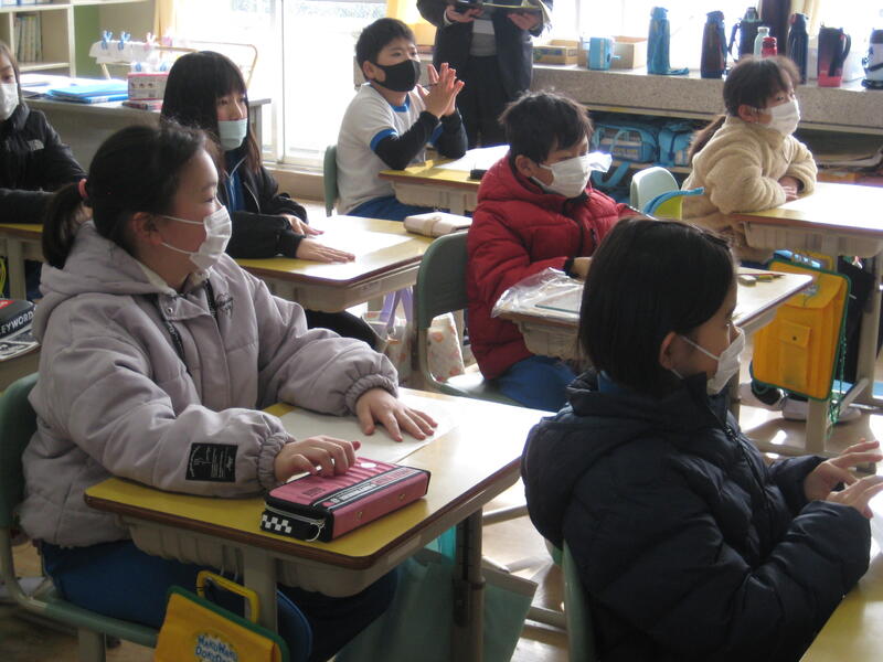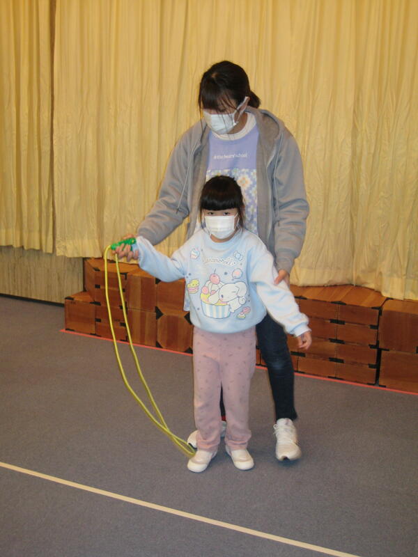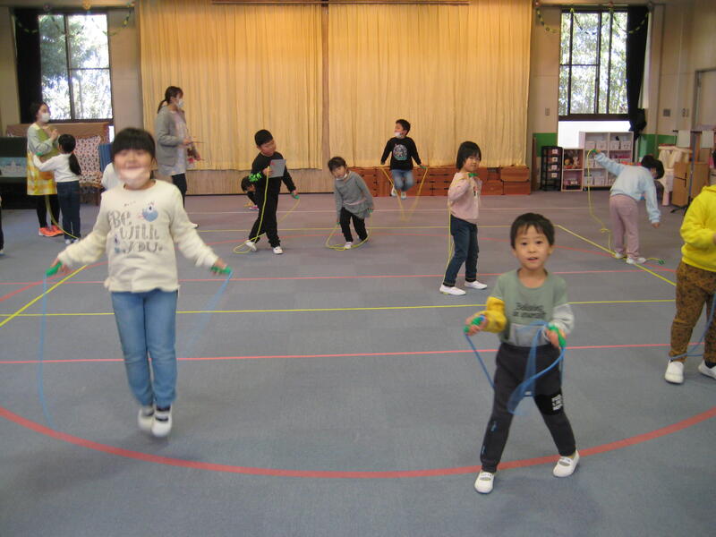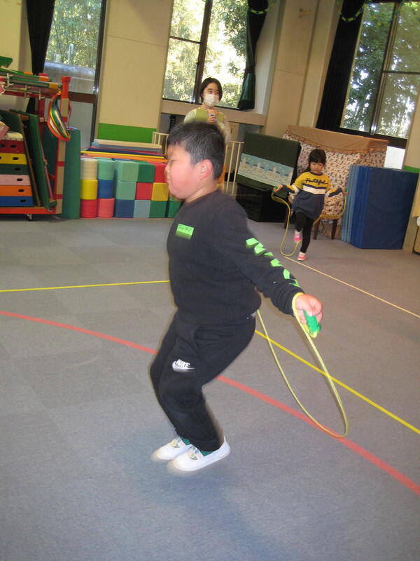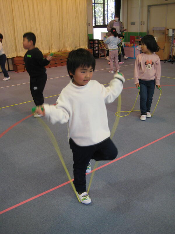 子どもたちは、跳んだ回数を喜んで先生に報告していました。