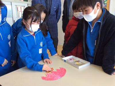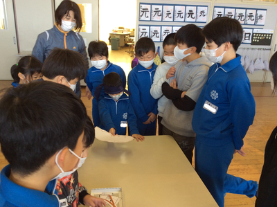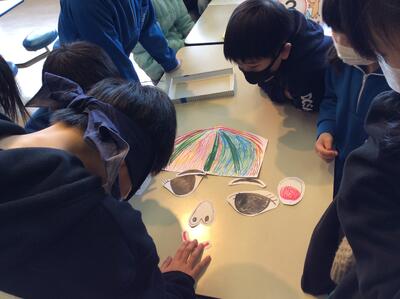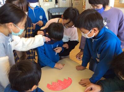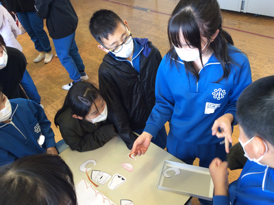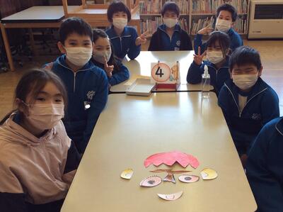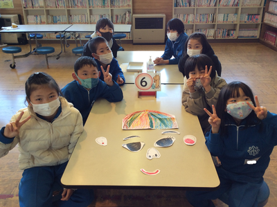 本日の縦割り班活動の様子です。今日から昼休みの時間を使って縦割り班ごとに福笑いを行います。本日は1~3班でした。大変盛り上がりながら楽しく活動していました。