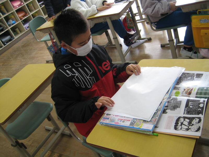 子どもたちが冬休みに取り組んだ自主学習が展示されました。