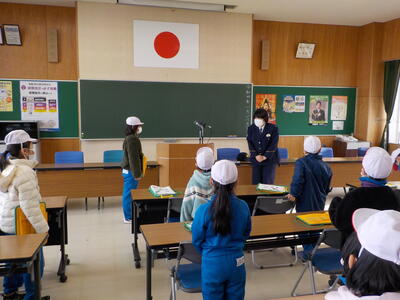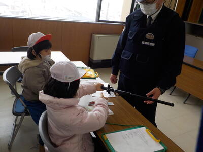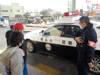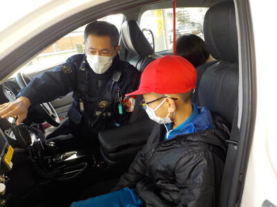 3年生の警察署見学の様子です。いくつかの班に分かれパトカーや様々な道具を実際に触らせてもらいながら説明していただきました。本日の見学学習を通して、普段私たちの安全を守ってくれている警察の方々のはたらきや努力を知ることができました。