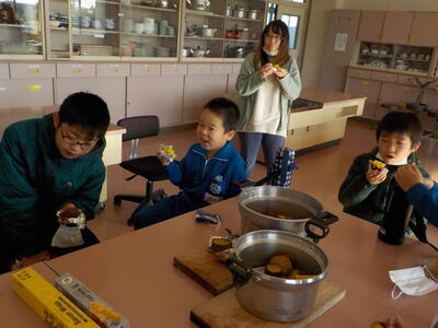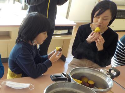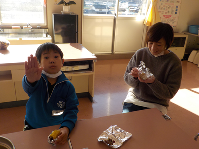 さつまいもをふかし芋にして食べました。自分たちで手間をかけて作った分、よりおいしくできあがったかと思います。食べきれなかった分は職員室にお裾分けしてもらいましたが、先生たちにも大好評でした。
