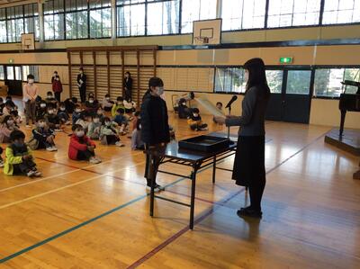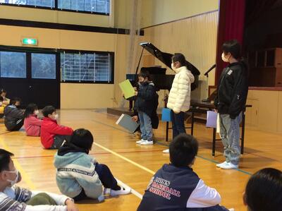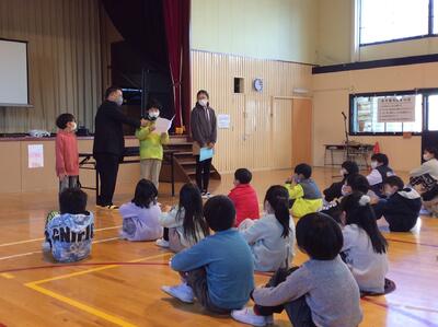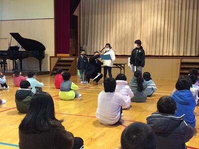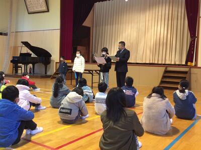 校長先生のお話の後には、1・3・5年生の代表児童による「冬休みの思い出と3学期のめあて」の発表がありました。冬休みを経て3学期、さらなる成長を期待したいと思います。