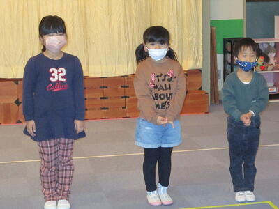 小学校より一足先に始業式を行いました。第3学期初日、寒い朝のスタートになりましたが、全員元気に登園しました。