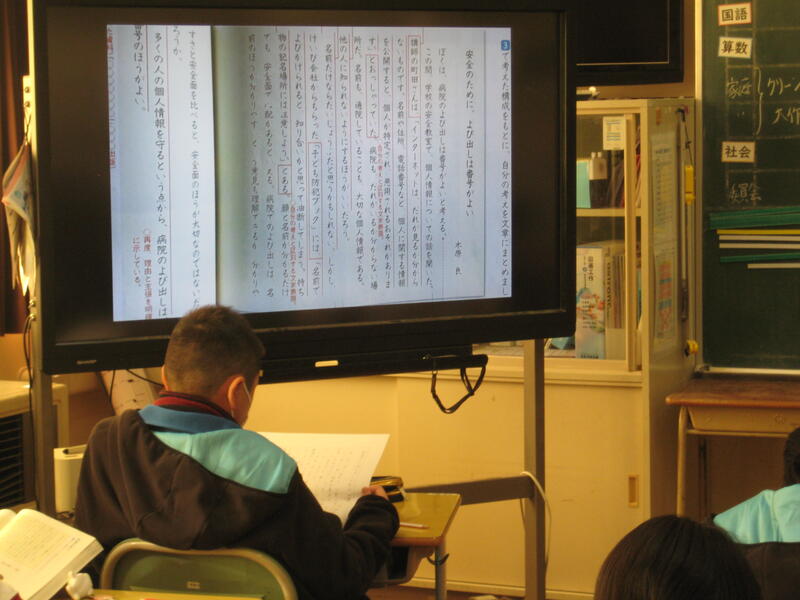 昨日の学習の続き、5年生の国語科の学習の様子です。