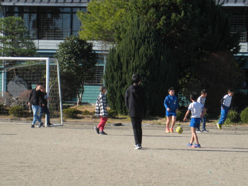 5年生の様子です。ゲーム係の企画でサッカーをやりました。クラスのみんなが楽しめるようにボールを二つ使ってのサッカーだったようです。子どもたちは時間いっぱいまで走り回り、サッカーを楽しめたようでした。