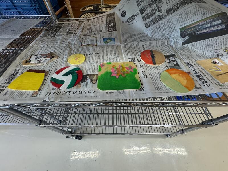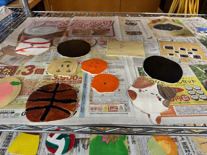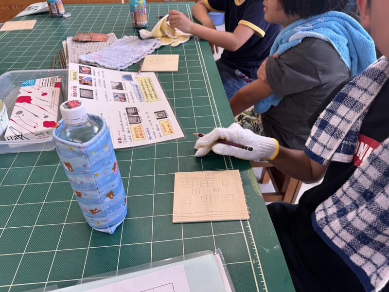 コースターの原材料にすぐにデザインを描く子、糸鋸で自身の考えたアイデアを切り抜く子、アクリル絵の具で絵付けをす子など、それぞれが思い思いに製作を楽しみました。