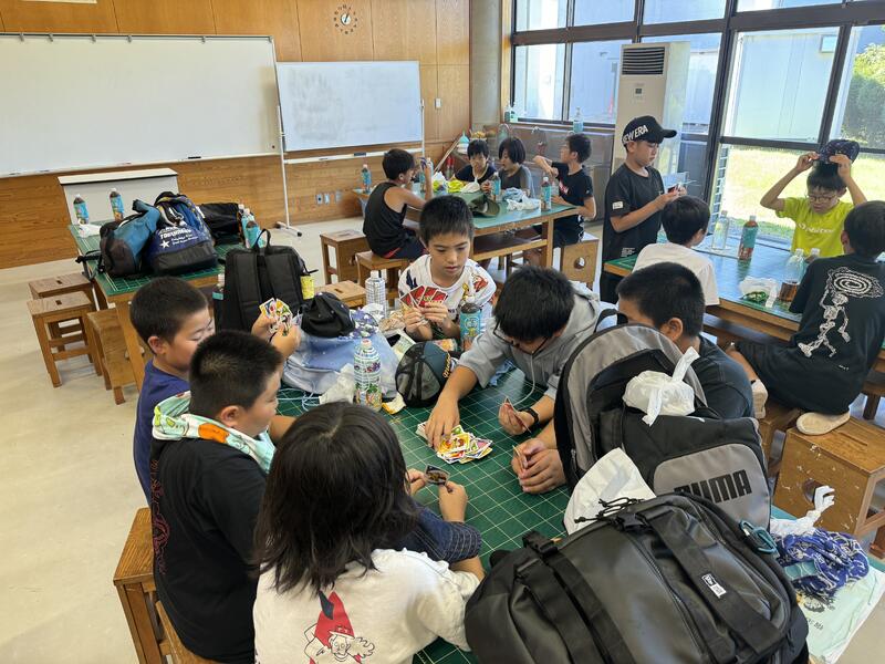退所の集いが行われる野外学習室でトランプやウノに興じる子どもたち