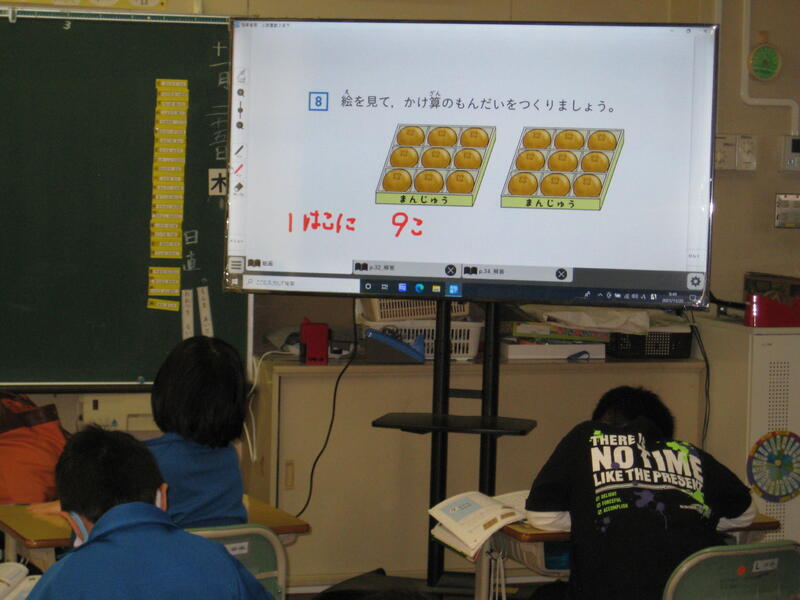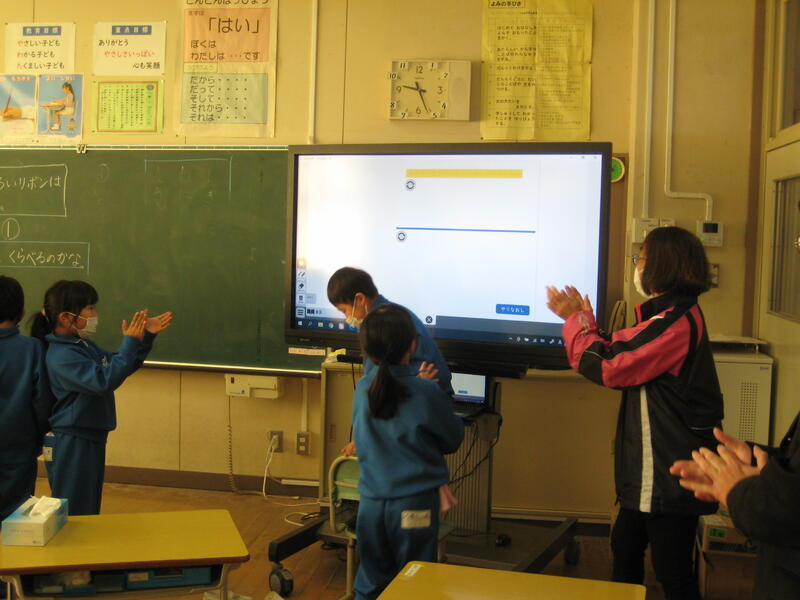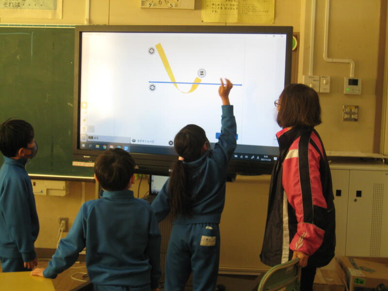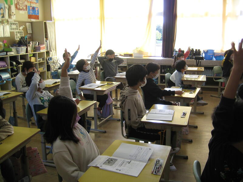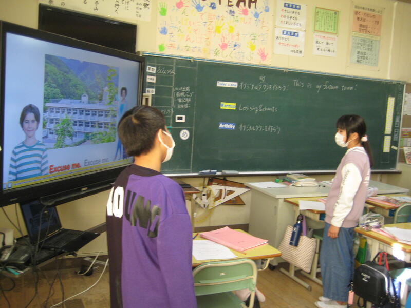 今日の外国語科の学習でも、まず英語の歌を歌いました。