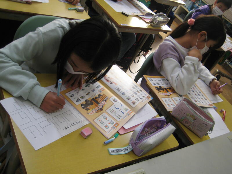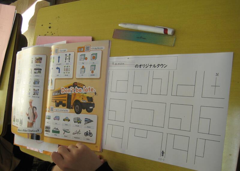 次の時間には、実際にその地図を見ながら英語で道案内をする予定です。