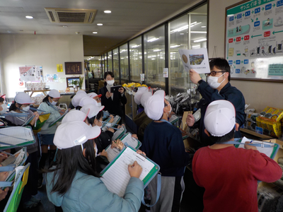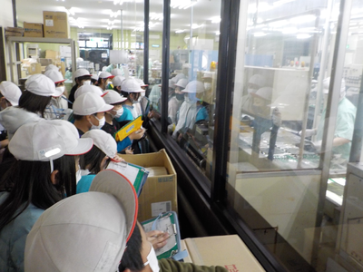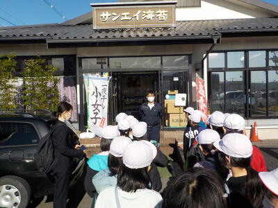 5年生の校外学習の様子です。本日はサンエイのりで、買い付けしたのりが梱包される様子を見せていただきました。子どもたちは機械が動く様子を見学したり、気になったことを質問したりしながら有意義な時間を過ごすことができました。