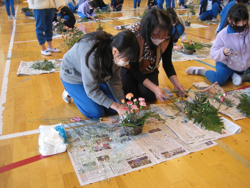 今日は、5・6年生がJAさんのご協力により花育を行いました。