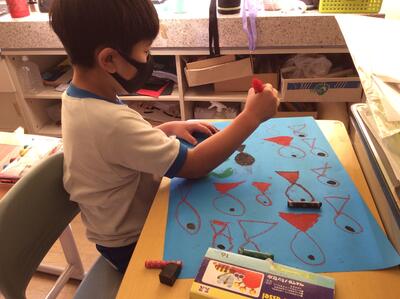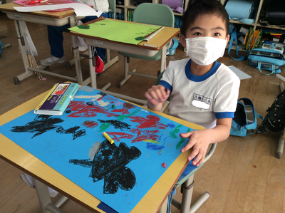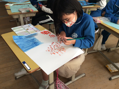 2年生の図工の様子です。今回の授業では、国語科で学習した「お手紙」「ミリ-のすてきなぼうし」「スイミー」の中から1つ選び、物語の場面を絵で表す活動をしました。どの作品を選んだ児童もすてきな作品を作っていました。