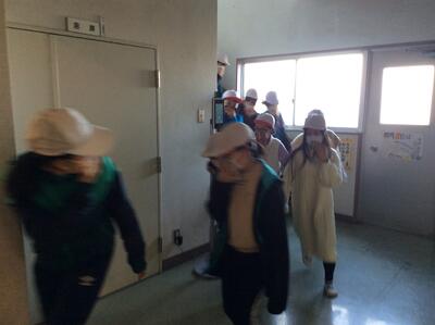 2021年11月26日 10時23分本日の避難訓練の様子です。今回は給食室での火災を想定し、訓練をしました。児童の多くはこれまでの訓練で学習した通りにハンカチで口を覆い、低い姿勢で避難することができていました。また、避難訓練後にも自分の避難行動について真剣に考え、振り返る姿が多く見られました。もし本当に災害が起きても今日のことを思い出し、適切な避難行動をとってほしいと思います。