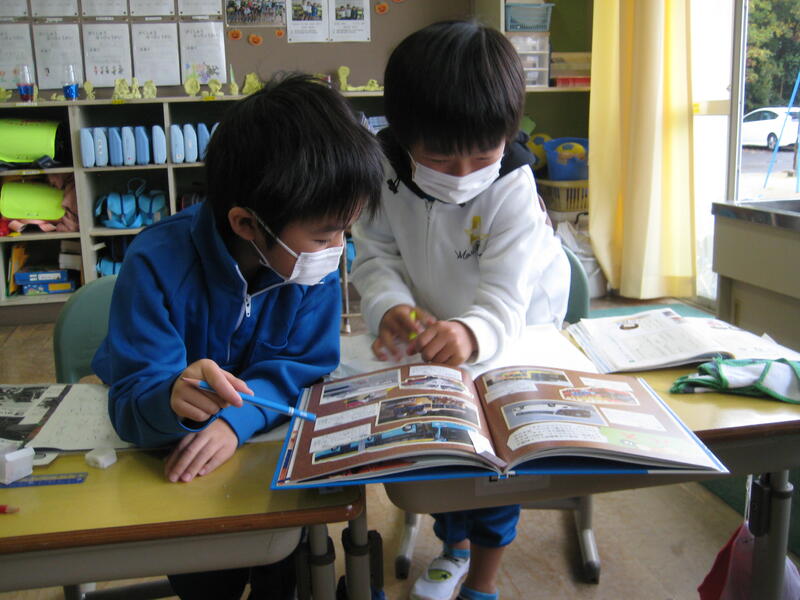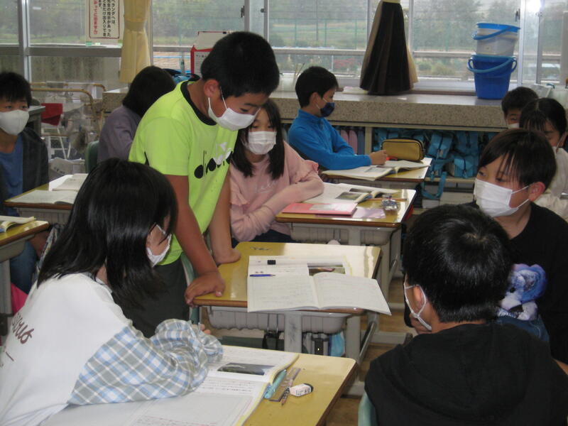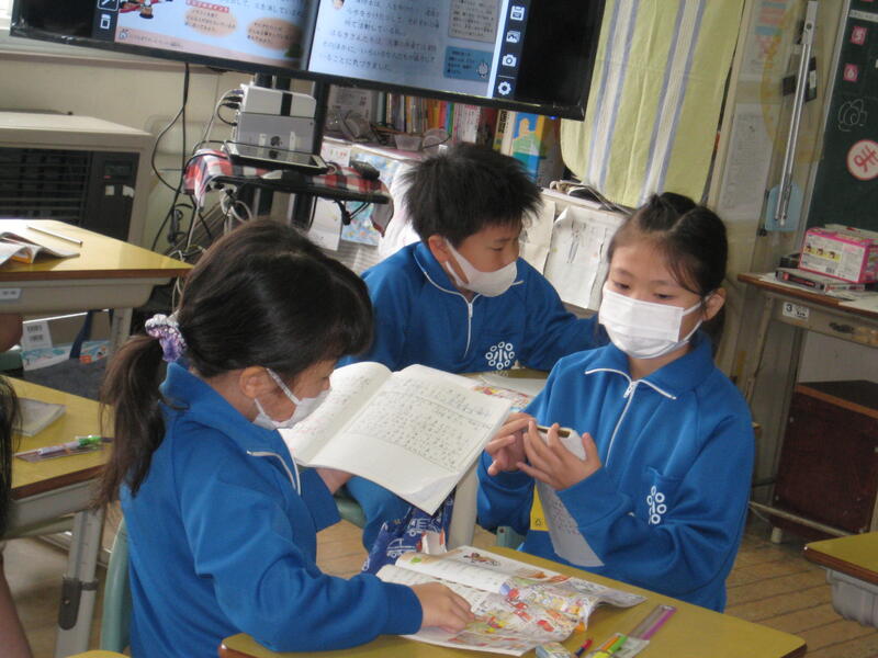 子どもたちは、教科書を読んだり、友達と話し合ったりしながら