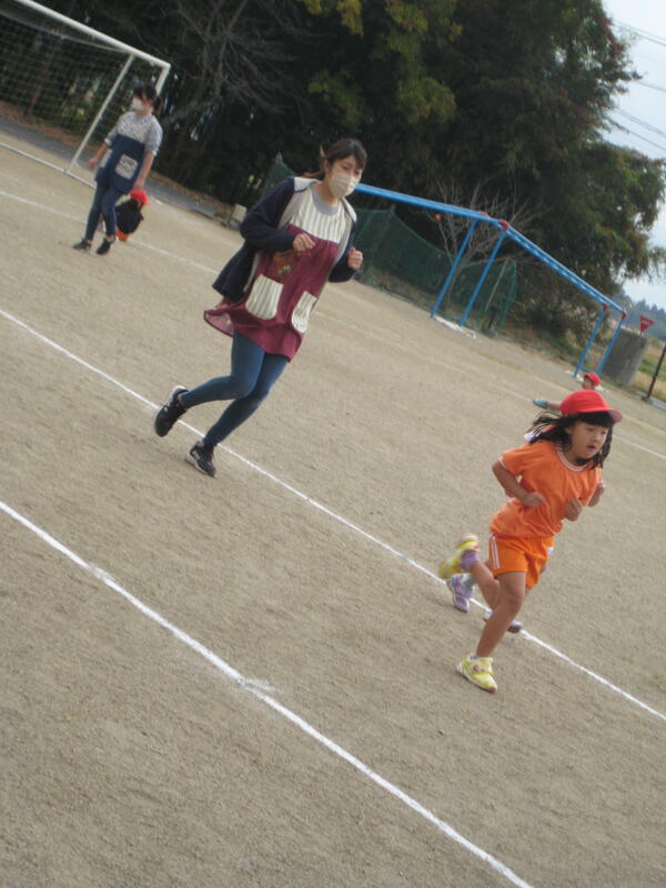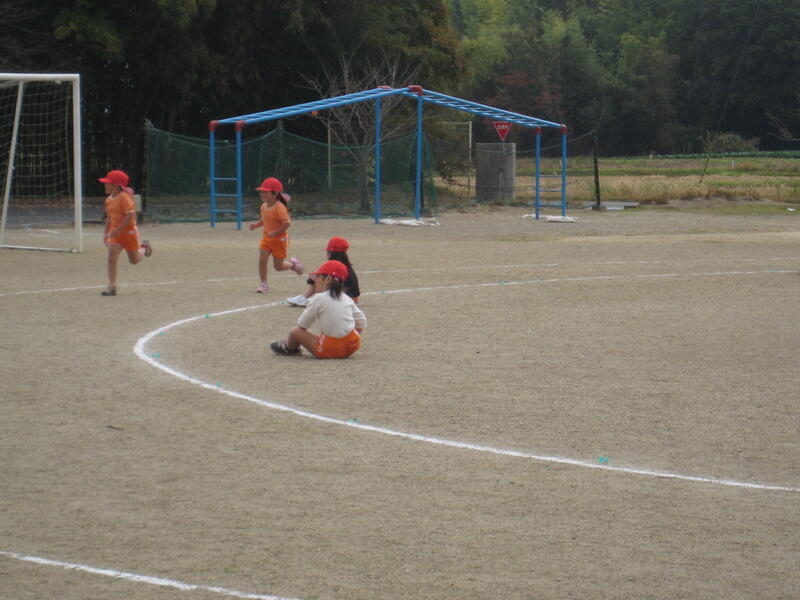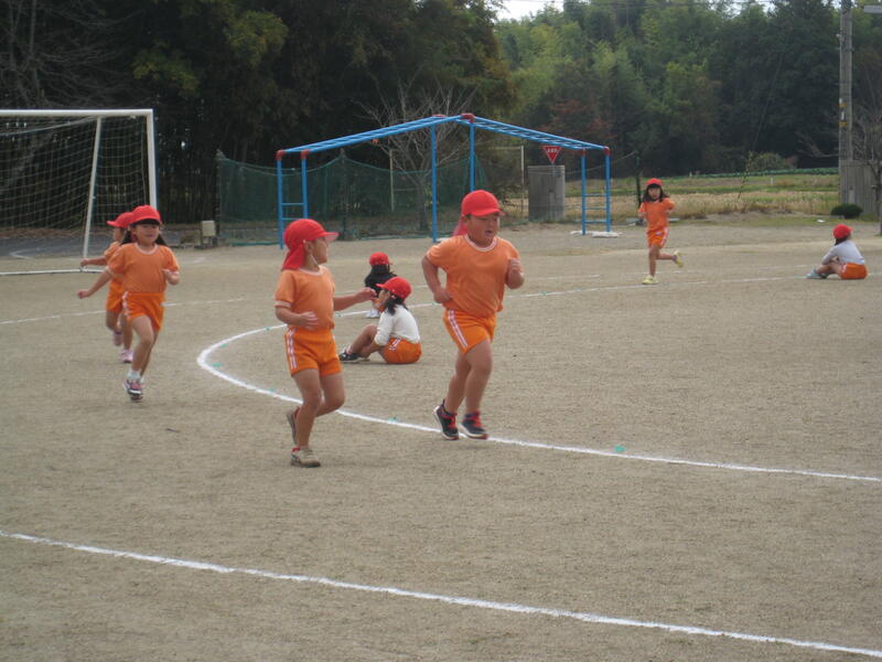 幼稚園の子どもたちは、マラソン記録会に向けて