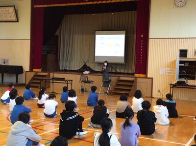 全校朝会の様子です。作文コンクールの表彰、ソフトテニスの賞状と八幡小学校への感謝状の紹介と校長講話がありました。校長講話では、挨拶や登校の仕方が良くなっていること、そして大谷選手の話をもとに目標を持つことの大切さをお話しいただきました。