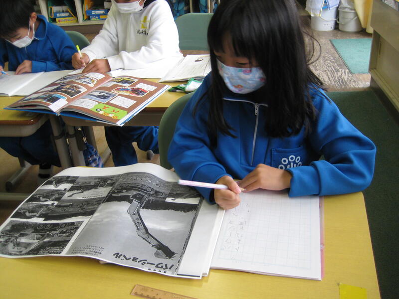 今日は、資料をもとに自動車のしごとやつくりを調べて