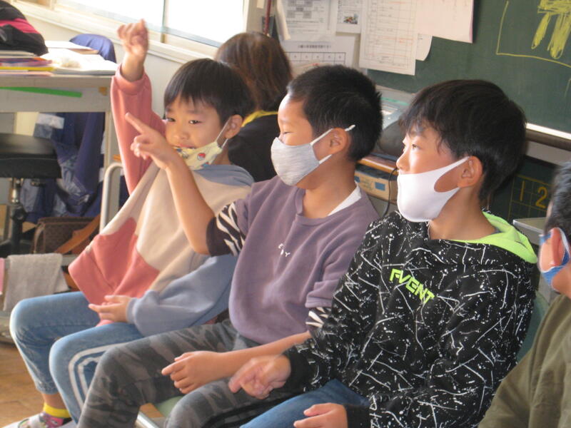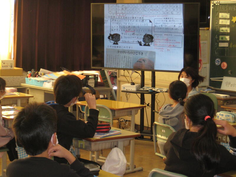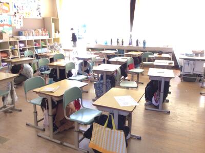 写真は、1年生の学級活動の様子です。