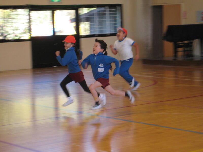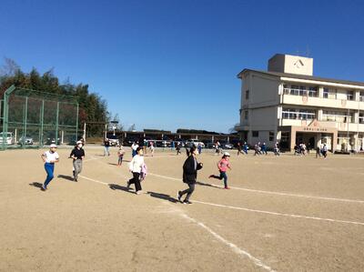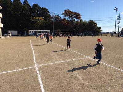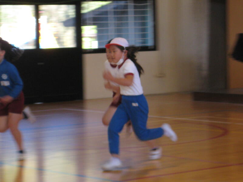 業間マラソンの様子です。避難訓練後の短い時間ではありましたが、マラソン記録会に向け一生懸命走る姿が見られました。