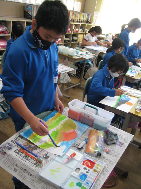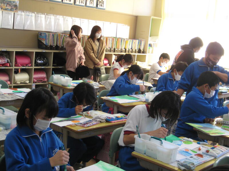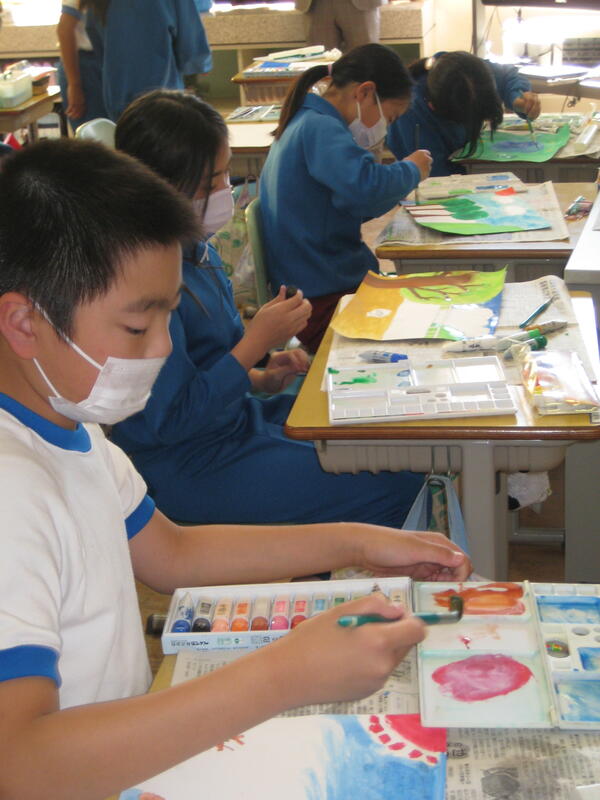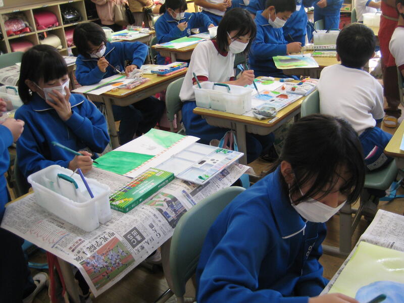 写真は、5年生の図画工作科の学習の様子です。